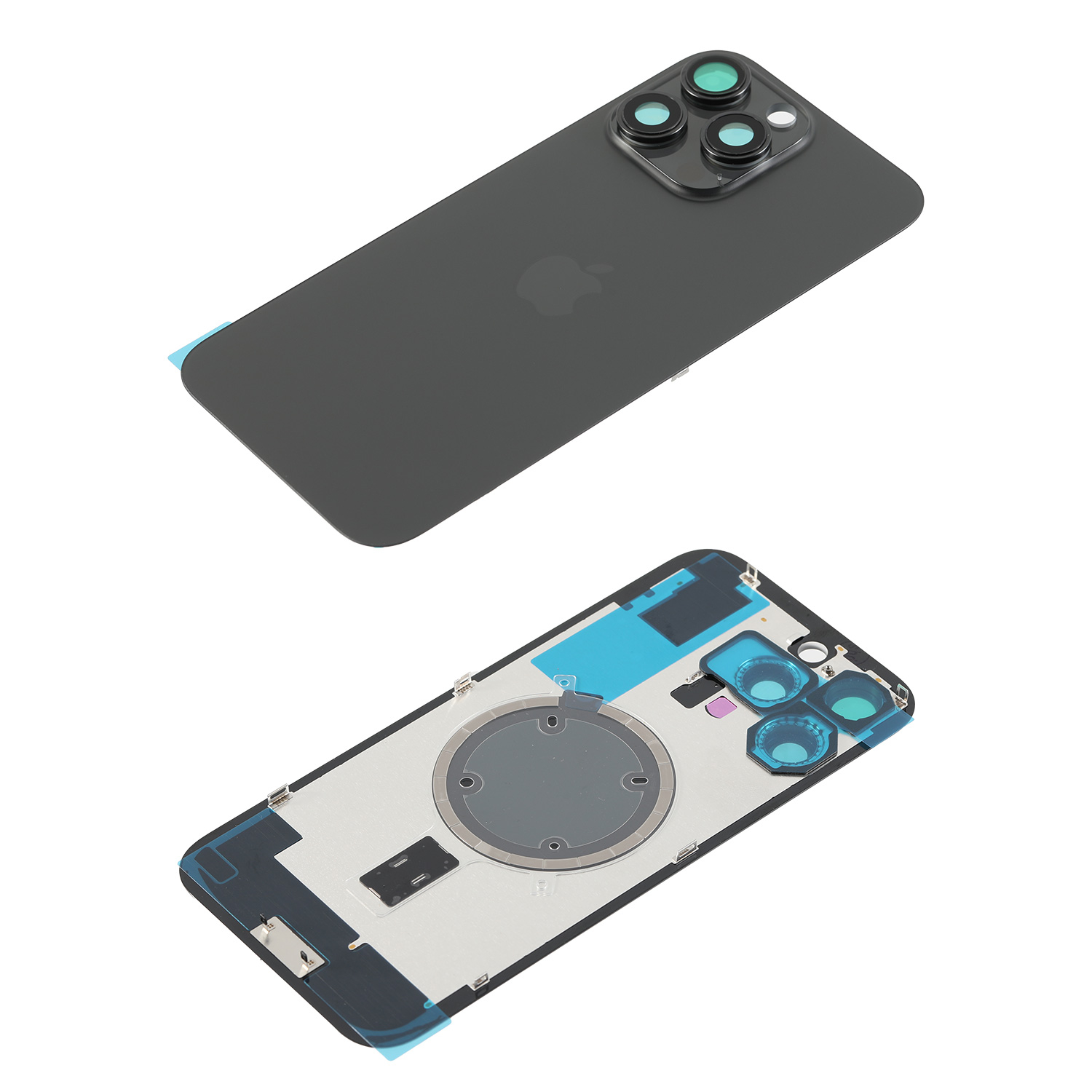 🔧 Capac spate din sticlă pentru iPhone 16 Pro Max, turnat dintr-o singură bucată pentru o potrivire perfectă. Include magneții pentru MagSafe integrați, dar nu include modulul NFC – acesta trebuie transferat de pe capacul original.