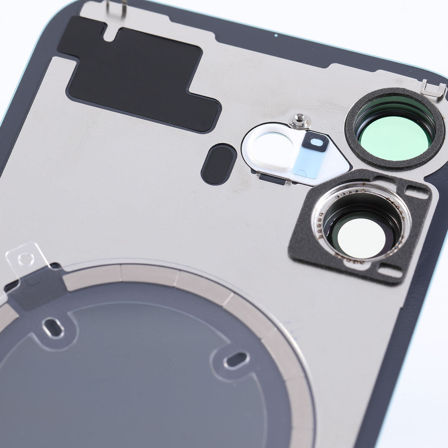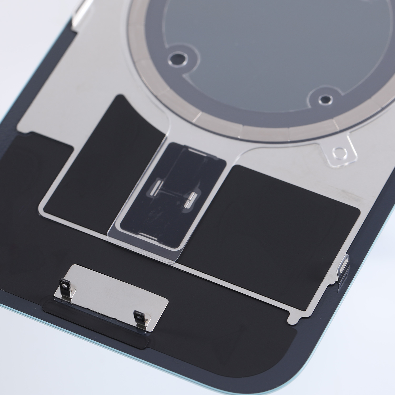 🔧 Capac spate din sticlă pentru iPhone 16, turnat dintr-o singură bucată pentru o potrivire perfectă. Include magneții pentru MagSafe integrați, dar nu include modulul NFC – acesta trebuie transferat de pe capacul original.