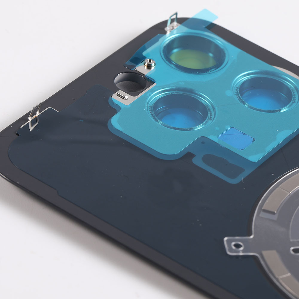 🔧 Capac spate din sticlă pentru iPhone 15 Pro, turnat dintr-o singură bucată pentru o potrivire perfectă. Include magneții pentru MagSafe integrați, dar nu include modulul NFC – acesta trebuie transferat de pe capacul original.